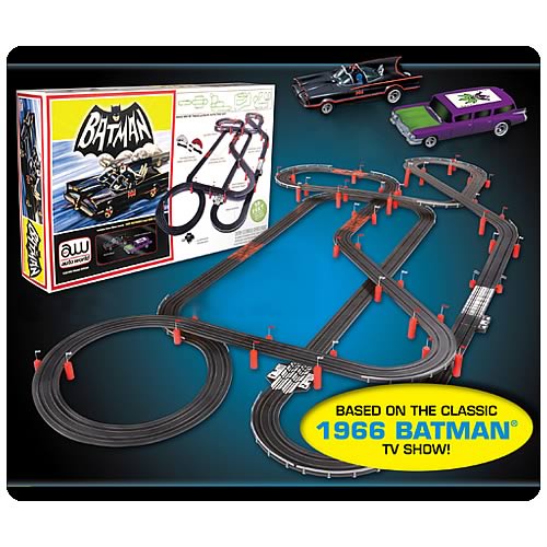 Head back to the campy Sixties as Adam West and Burt Ward chase down Cesar Romero in this classic Slot Car set. With 49 feet of track and 5 optional layouts, you can re-live your childhood racing dreams once again.
