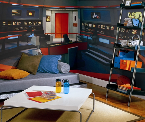 Flaunt your Star Trek Geek cred by installing this 9’x15′ wall mural in your living room and get ready for the chicks to come crawling! It installs like an easier version of wallpaper (the pre-pasted sheets are activated by water) and simply press it on. Perfect for renters as the sheets will simply peel off when you need to vacate the premises.