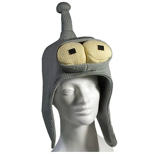 Tell the world to bite your shiny metal ass every time you slip on this cozy knit Bender hat that will keep your noggin toasty warm come Winter…not that you didn’t already tell people to bite you before the hat, but at least this time people will think you are portraying a character instead of simply being an asshole.