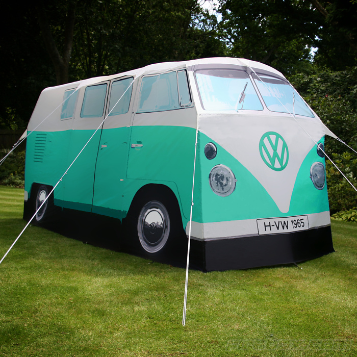 The van comes in Peppermint Green, Blue and Red and sleeps four hairy, smelly people (and probably a mangy dog or two) comfortably.