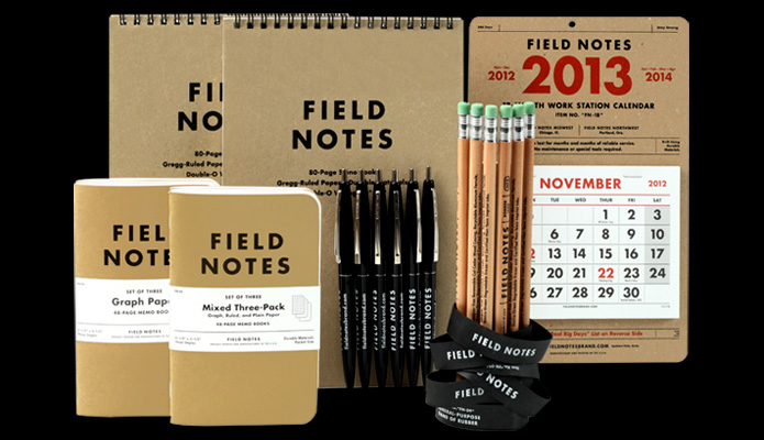 This particular “Kit” comes complete with everything a stationary/design junkie could covet: Steno pads, Graph notebooks, pencils, click pens, rubber bands, and a 2013 calendar all done in a super-sharp font that screams vintage.