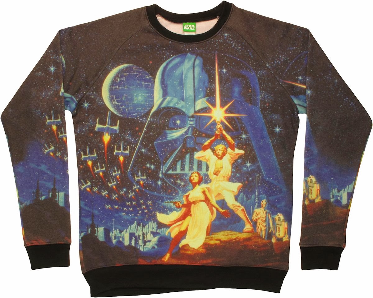 This Star Wars sweatshirt reproduces one of the posters for the movie that started it all, 1977’s Star Wars. The Star Wars Poster Sweatshirt is heathered charcoal with black trim and raglan sleeves. This warm and comfortable sweatshirt is lightweight with a soft interior and a double sided, dye sublimated print featuring Luke Skywalker, Princess Leia, C-3P0 and R2-D2, with a looming Darth Vader and his Death Star in the starry background along with TIE Fighters heading for battle!
