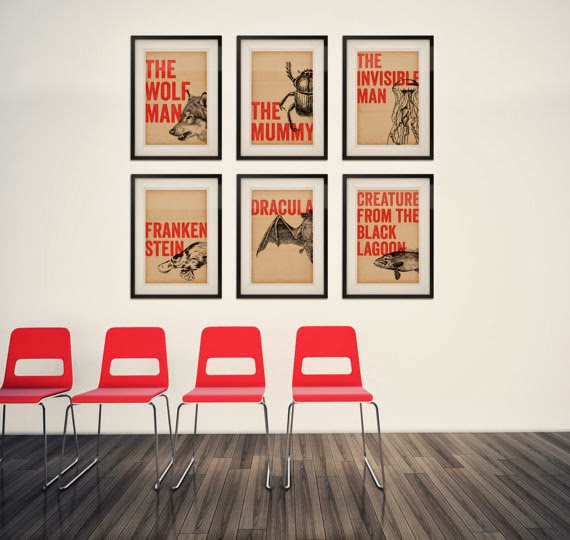 I absolutely adore the Universal Monster movies and these posters not only celebrate those flicks from yesteryear, they look fabulous grouped on a wall where your love of old horror movies can really shine.