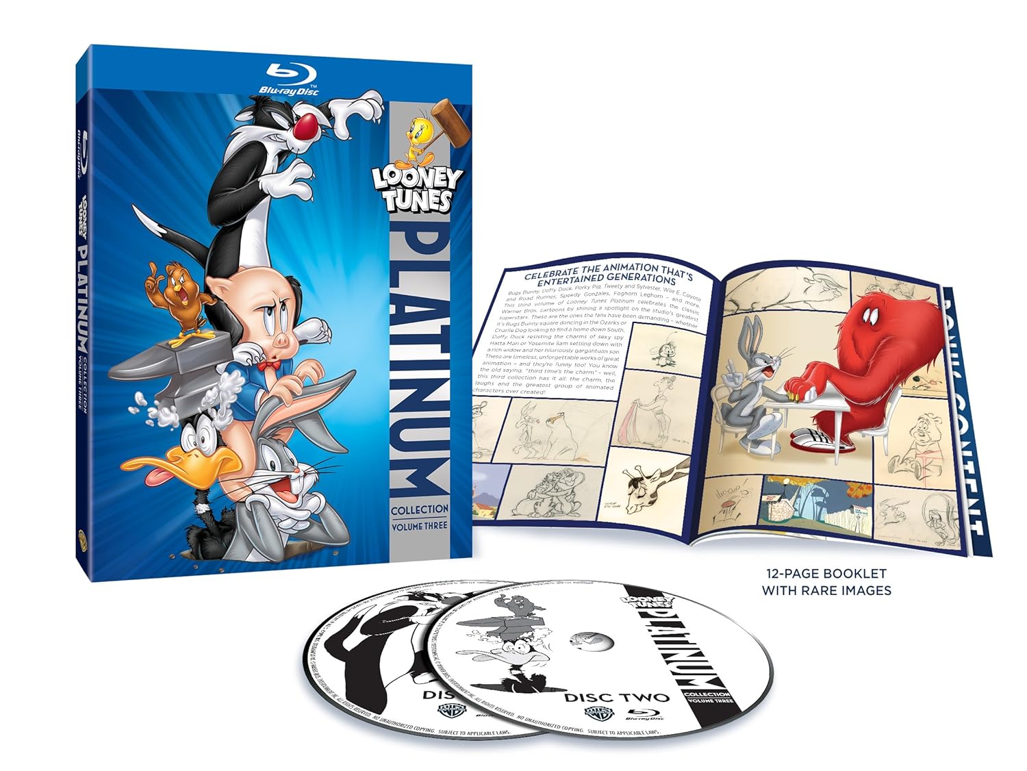 Disc one of Looney Tunes Platinum Collection Volume 3 offers a collection of 25 classic shorts devoted to everyone’s favorite carrot-crunching, “wascally wabbit,” Bugs Bunny, as he faces off against the likes of Elmer Fudd, Yosemite Sam and Wile E. Coyote. This disc features an Academy Award-winning short titled Knighty Knight Bugs, in which a medieval Bugs Bunny trades blows with Yosemite Sam and his fire-breathing dragon. Also featured on this disc are two Academy Award-nominated shorts, Hiawatha’s Rabbit Hunt and Pigs in a Polka. Disc one includes featurettes, select commentaries and alternative audio tracks. Disc two showcases an all-star collection of shorts from favorite Looney Tunes characters including Sylvester & Tweety, Daffy Duck, Porky Pig, Speedy Gonzalez, Foghorn Leghorn among several other fan favorite characters. This disc features eight Academy Award-nominated shorts, Swooner Crooner, Life with Feathers, Sandy Claws, Mouse and Garden, Walky Talky Hawky, Rhapsody in Rivets, High Note and Nelly’s Folly. In the Academy Award-winning short, Birds Anonymous, Sylvester joins a “Birds Anonymous” group in an effort to stop chasing Tweety. Disc two also includes featurettes, select commentaries and alternative audio tracks.