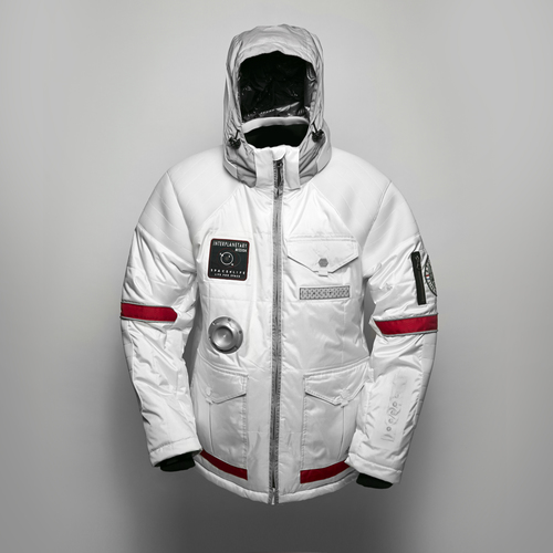 The design of the jacket takes inspiration from the classic spacesuit and offers many technical features as well as excellent protection from the elements . The exterior of the jacket is made from a unique trilobal fiber which is both waterproof and light-reflecting. The hood includes built-in speakers, controllable via Bluetooth or via the integrated remote on your sleeve which also allows you to effortlessly control your phone. The jacket comes in a special Spacelife ambassadors kit, containing various space-inspired accessories.
