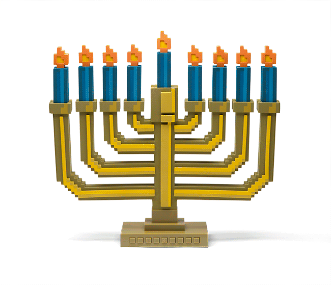 Here’s a modern, geeky way for you to celebrate the Festival of Lights without having to worry about setting your place on fire or having “the talk” with HR. This 8-Bit Light-Up Menorah is a simultaneously modern and retro take on the traditional menorah, the nine-armed Hanukkah candelabrum.