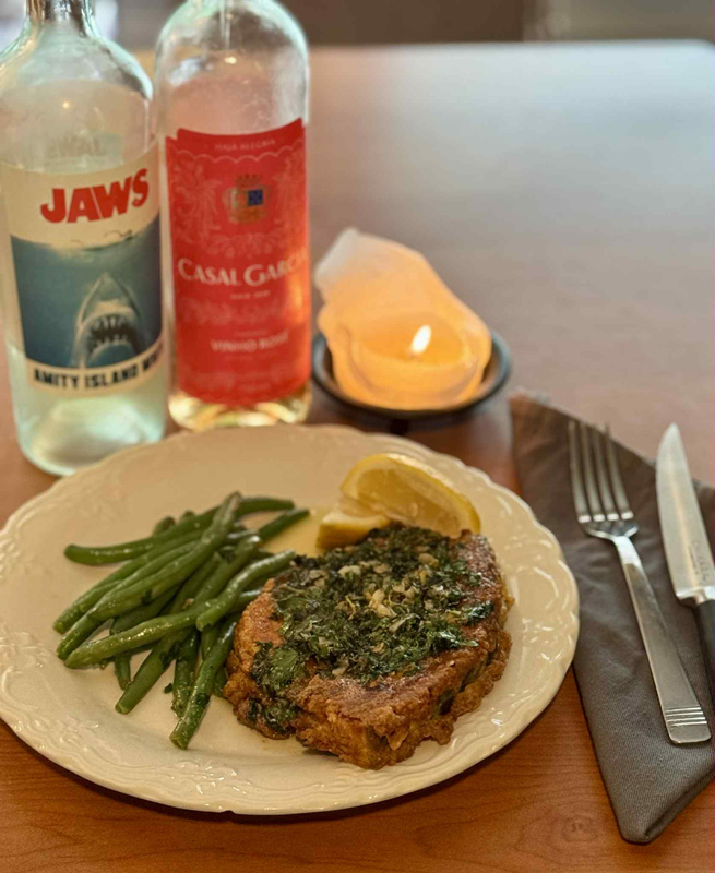 We’re not going to recreate these meals exactly, but we can use this as a template for a three-course, JAWS-themed meal that requires a little effort and a little care, and almost no shakin’ or tenderizin’.