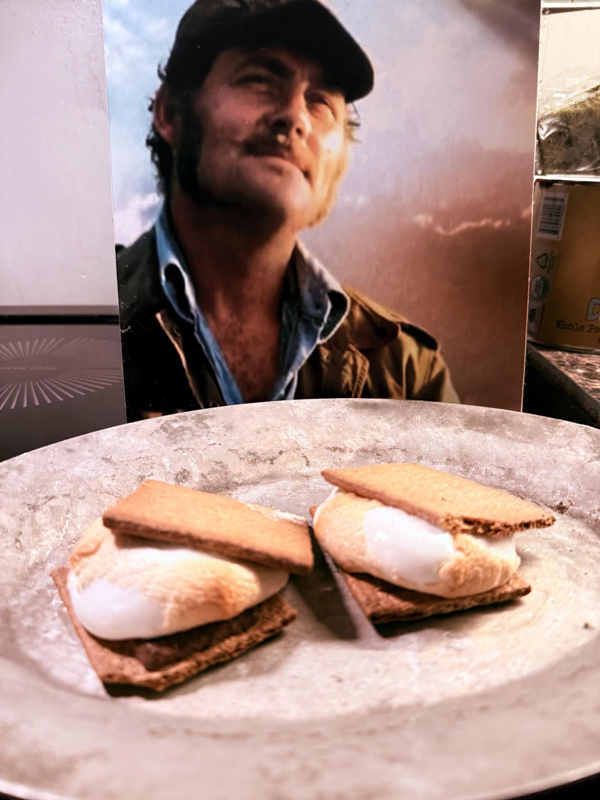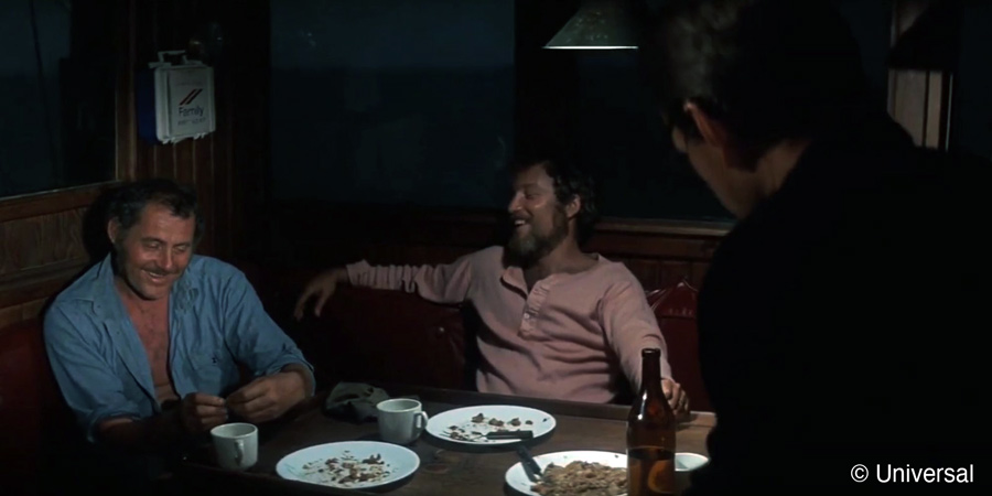And before Robert Shaw delivers the greatest monologue of all time, the three men appear to have finished shit on a shingle – creamed chipped beef – and some wine or ale.