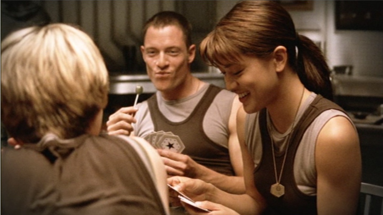 Within the Twelve Colonies, Triad is a type of bluffing card game similar to poker. The rules aren’t explained within the narrative of the series, but the hexagonal card faces feature abstract symbols and the back of the cards show a large star surrounded by a border with smaller stars. The highest winning hand, is “Full Colors” and when betting is concluded, players declare their hands.