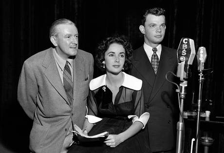 | Johnson (right) with James Hilton and Elizabeth Taylor, recording a radio drama, ‘West of the Hills’, in 1950 |