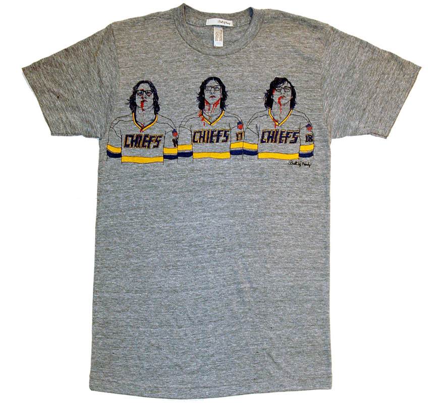 | The infamous Slapshot Hanson Brothers “Chiefs” T-shirt I inadvertently wore while getting my straight razor shave. |