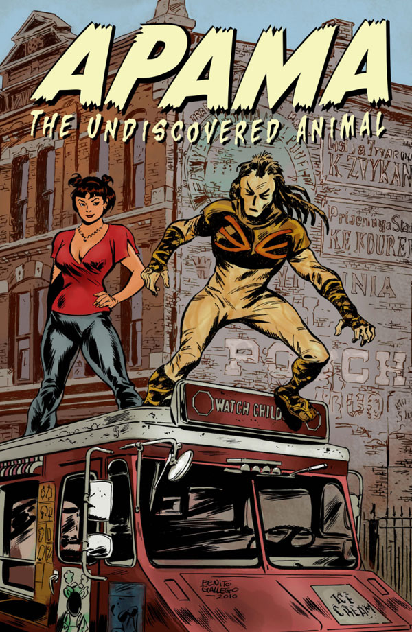 Issue #3 comes with a more formal costume for Apama with the help of a former Project Runway contestant but also things start to get a little more cosmic and strange as an alien threat makes it’s presence known. Apama takes on a drug dealer in his most public appearance yet, and public opinion is starting to be formed about our animal man.