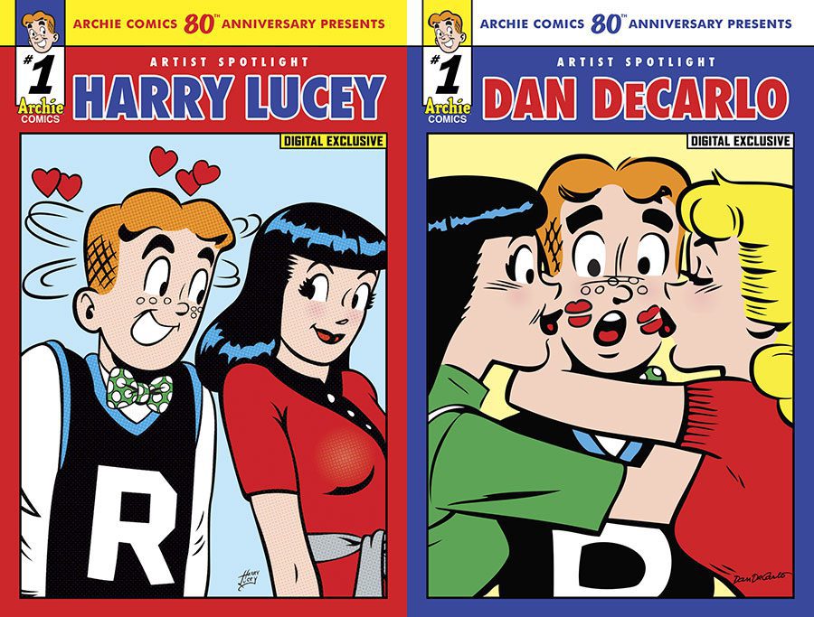 To celebrate the 80th, Archie Comics is releasing a series of specialized digital comics, each highlighting a character or a creator. At hand are the Harry Lucey volume and the Dan DeCarlo volume.