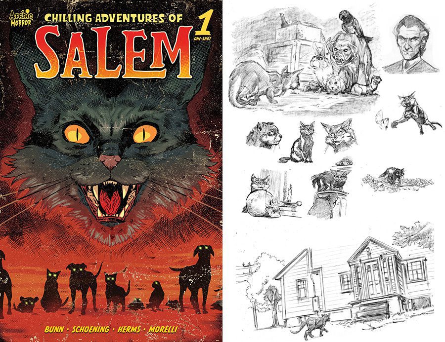 Archie Comics’ beloved teenage witch Sabrina Spellman is no stranger to Archie Horror, having headlined her own comic, CHILLING ADVENTURES OF SABRINA, that spawned a Netflix streaming series. Like any good witch, Sabrina has a magical feline familiar named Salem, and now, horror-loving cat fanciers will have something to celebrate on October 12 when he stars in his first solo title, CHILLING ADVENTURES OF SALEM! Written by comics horror master Cullen Bunn (Harrow County) with evocative nostalgic “horror paperback” art by Dan Schoening (Ghostbusters), the one-shot follows Salem as he helps neighborhood animals exact revenge on those who’ve caused them harm.