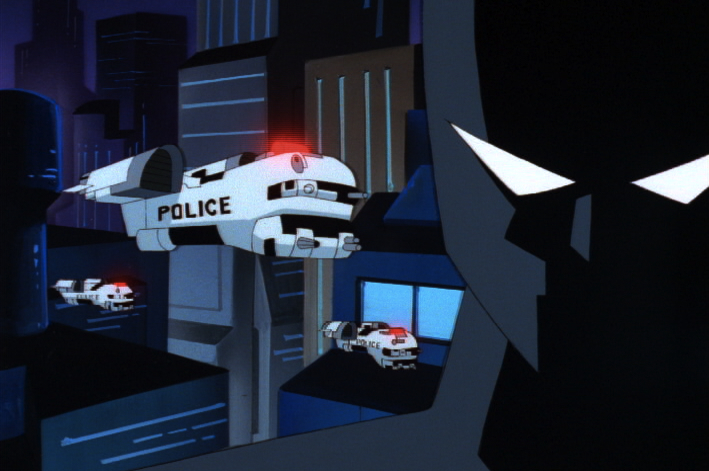 There was an episode called “Out of the Past” where it’s Bruce Wayne’s birthday and as a birthday present Terry takes Bruce to see a new play, “Batman: The Musical.” So there’s Bruce sitting in the audience, watching these people in costume jumping on stage, singing about the Dark Knight, and Terry’s right behind him humming the songs. And Bruce just hates it. Seeing Bruce Wayne watching “Batman: The Musical” was pretty funny.