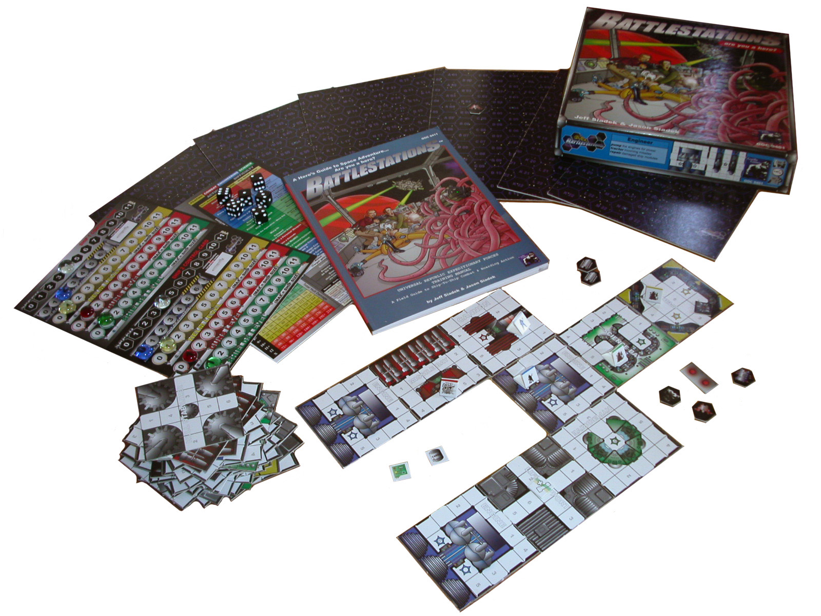 To produce Battlestations we needed art and printing and paper and boxes and dice and glass beads and money. I used to take my infant daughter Arden to Bed Bath & Beyond and look at the glass beads in their decorative nonsense section and think “at a dollar a bag, I could afford to put 10 of these in my game.” I’d had a game business before Gamesmiths so I’d learned something about the industry the hard way as that company went under. This was more of my education and it paid off when I was starting Gorilla Games. I had contacts and knowledge that you just get from being around a business. I also knew enough to know that I couldn’t do the art and layout and computer stuff so I brought Jason in as my partner. Together, we begged and borrowed money and art and talent from our friends and family. Knowing what you cannot do is important because you can’t do everything and knowing where to get help is crucial.