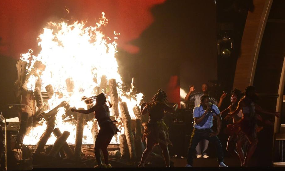 “Formation,” and Kendrick Lamar’s gigantic actual bonfire blazing behind him at