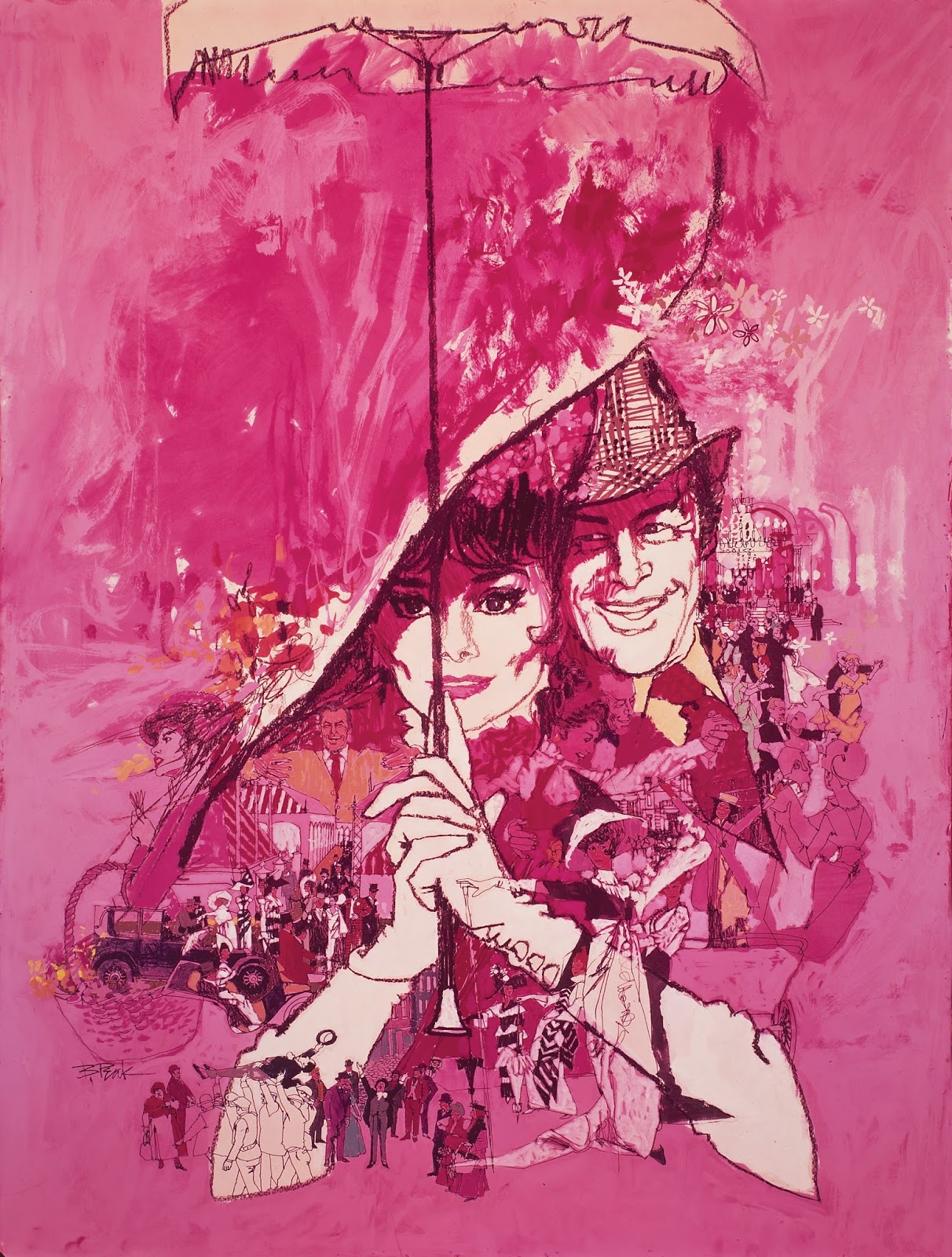 Films that Bob Peak would illustrate as posters would include (ok, get ready for this incomplete list!) Birdman Of Alcatraz, The Manchurian Candidate, My Fair Lady, Camelot, Our Man Flint, In Like Flint, Modesty Blaise, Enter The Dragon, Fistful Of Dollars, Funny Girl, Thoroughly Modern Millie, The Missouri Breaks, Lord Jim, Harry and Tonto, For Love of Ivy, Kaleidoscope, There Was a Crooked Man, The Great Waltz, The Yakuza, Islands in the Stream, The Spy Who Loved Me, Every Which Way But Loose, Something Wicked This Way Comes, The Wiz, The Big Red One, Hair, The Black Stallion…