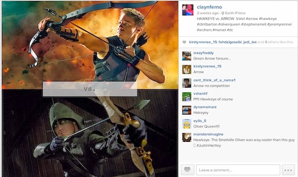 Alternatively, I feel sort of meh about Hawkeye as a character (he’s OK, I guess) so I took to Instagram to take an informal pole about what my friends thought was the better hero! Admittedly, the photo may using Renner vs. Amell may have skewed results!