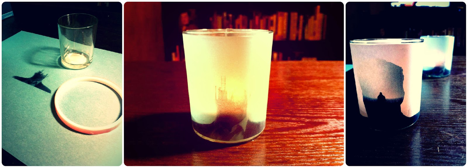 - Scale them down using your computer so they’ll fit snugly on the votive.
