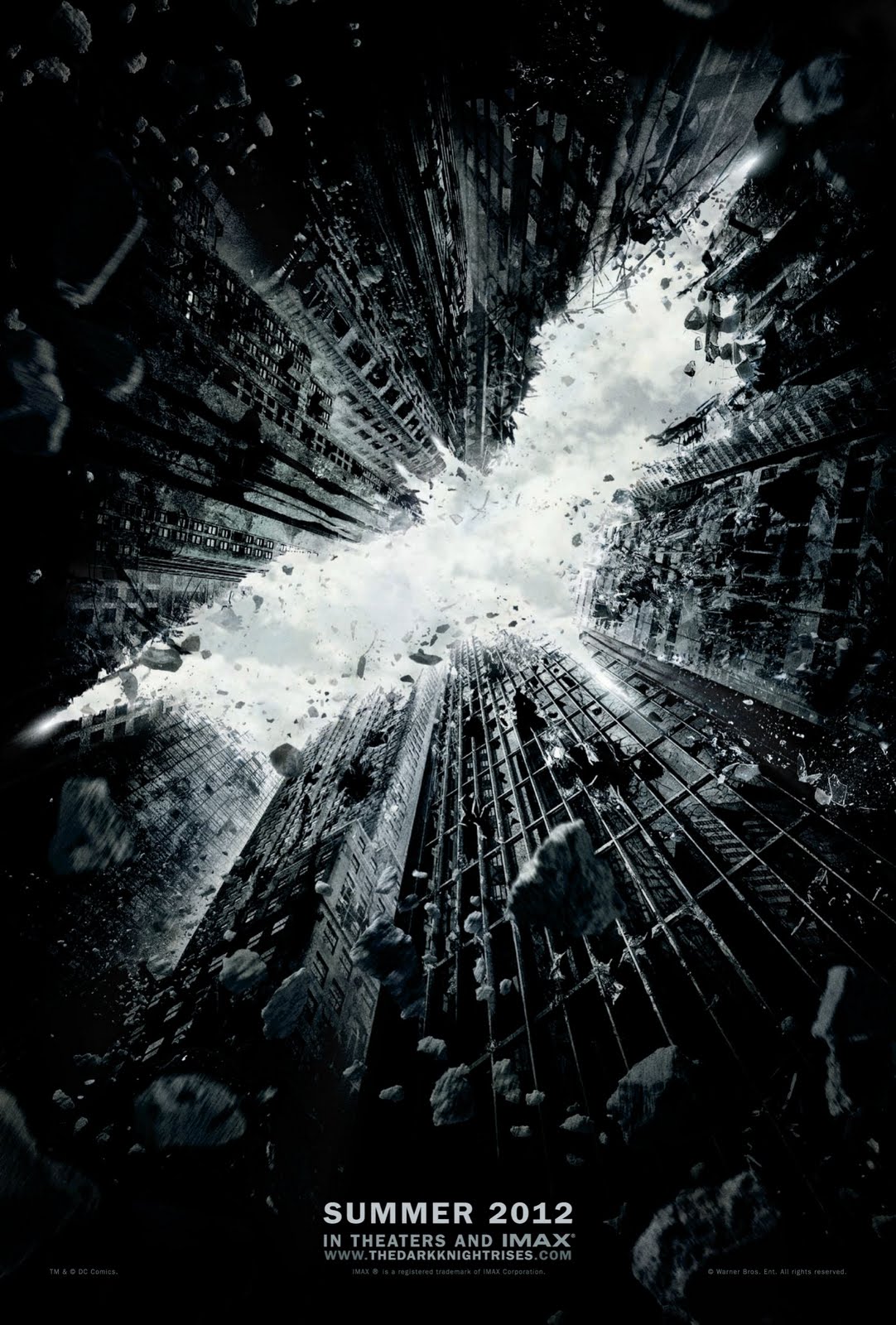 The first teaser trailer is expected to arrive with Harry Potter this Friday, but tonight Warner Bros. have released the first poster for next summer’s The Dark Knight Rises.