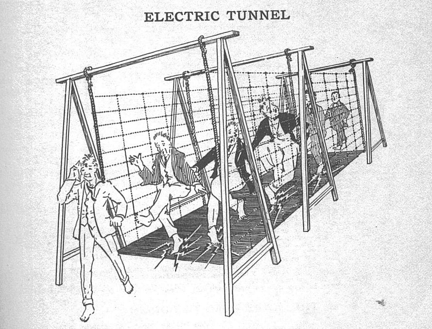 Seating your blindfolded initiate atop a bucking goat, may not be standard laugh material today, but at the time these catalogs serviced customers, they were one of The DeMoulin Bros. best selling gags. Pages are filled with variations on the theme but of course there are the many other gems such as water spurting alters and “Lung Testers,” collapsing chairs, fake branding irons, electric carpets and electric seats.