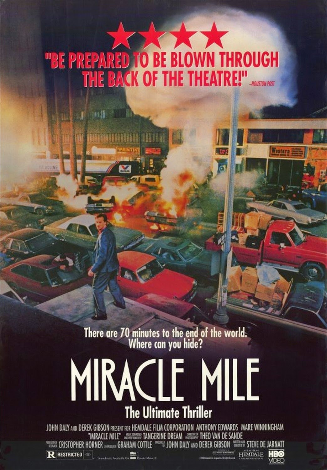 Edwards plays Harry Washello, a bit of a loser who just happens to pick up a ringing pay phone to hear a voice on the other end telling him that the nukes have been launched and he and the rest of LA have only 70 minutes to live. Now it’s up to him to get everyone else to believe him. Can he do it? More specifically, can he get Julie Peters (Mare Winningham) to believe him? They just met and he missed their date. Now he knows the future and has to find her before the world goes kablooey.