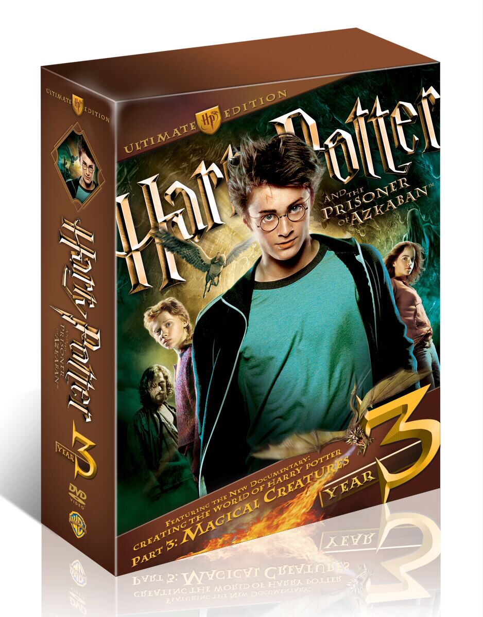 DISC 3: SPECIAL FEATURES • Additional Scenes • Creating the Vision: Interview with J.K. Rowling and the Filmmakers • Conjuring a Scene: Creating Buckbeak and the Dementors for the Screen • Johnny Vaughan and the Shrunken Head Lead Raucous Interviews with the Cast • Self-Guided Tours of Honeydukes and Professor Lupin’s Classroom • Meet the Animal Trainers in Care of Magical Creatures • 3 Great Challenges: Test Your Memory with Magic You May Have Missed, Help Crookshanks Catch Scabbers, and Go on an Unxepected Quest with Sir Cadogan COLLECTIBLES: • 48-Page Creatures Photo Book with Rare Images from Years 1-7 • Year 3 Lenticular Card • Two in a Series of Character Cards: Hermione Granger & Sirius Black