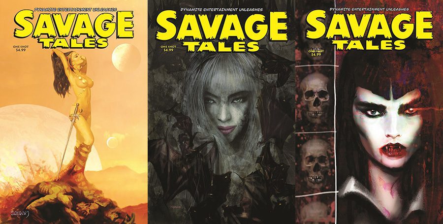 Savage Tales is an anthology series that dates back to the early 1970s when it existed as a black-and-white comic-magazine starring Conan the Barbarian. It was an attempt by Marvel Comics to enter a field dominated by Warren Publishing with their titles Vampirella, Eerie and Creepy. Since 2007 Dynamite has shepherded this legacy title, with full-color sword and sorcery tales of Red Sonja, and then joined by other hit characters. Fans who have collected each variation to date will love to continue building their sets of Arthur Suydam’s iconic homage covers.