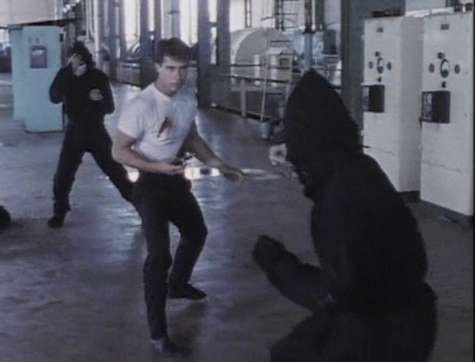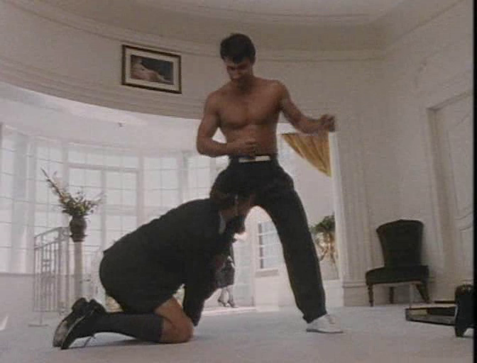 Blade has meanwhile abandoned his undercover activities, and is now training a new crime fighting task force in the previously top secret techniques of the Panther school with the assistance of police psychologist and SWAT team officer Andrews (Rowena Wallace). Blade is given the assignment of rescuing a politician’s strung out daughter from a high class brothel in the Australian suburbs. Blade goes undercover and is persuading her to leave with him when his cover is blown, and its time for a shirtless Blade to deal out some high impact justice to various thugs while dodging perverts in chicken suits and schoolboy outfits!