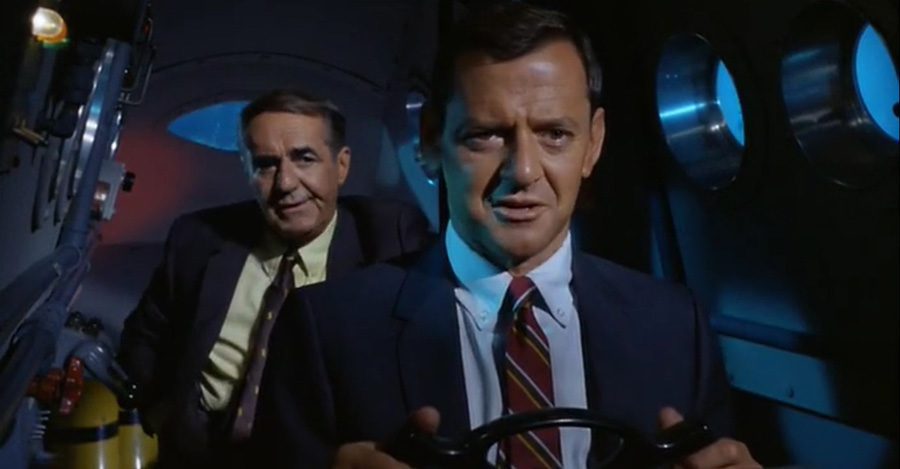 Our first scene shows us the interior of a mini-sub piloted by Fred Miller (Tony Randall), who is bringing his boss T. R. Hollister (Jim Backus) down to the sea floor three miles off Miami. There, he shows off the “Green Onion,” an underwater house built for $200,000 (about $1.8M in today’s currency; for the sake of comparison, via Yatco, a modern personal submarine smaller than the one we see Miller and Hollister in starts at $2M and goes up from there…).