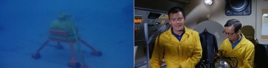 Meanwhile, looking to have a backup plan and still not entirely sold on the idea of housing under the sea, Hollister greenlights a project put forward by Frank’s rival, Mel Cheever (Ken Berry). Cheever has designed a platform that vacuums the sea floor to pick up gold and other precious metals, and goes down with an assistant, Jonah (Arnold Stang), to test it out.