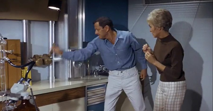 Somehow, he managed to make the disparate cast work on screen. The idea of Tony Randall as a man of action and brilliant scientist may not have crossed anyone’s mind before or since, but here it manages to work. Most of the rest of the company didn’t need to do as much heavy lifting, with “default” shticks that were probably why they were hired to begin with.