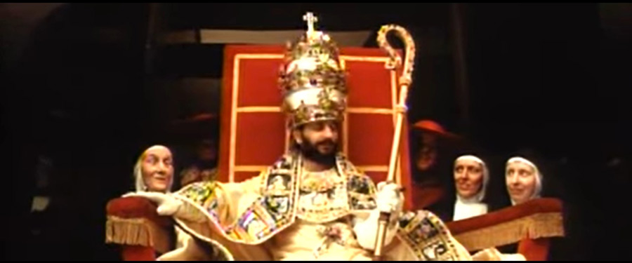 Part of the bargain involves running away with Carolyne once she gets her divorce and marrying her in Rome. Unfortunately for her, His Holiness the Pope (Ringo Starr) does not sign off on her being able to remarry, which Franz takes as a sign that yes, he should take up holy orders, and becomes a Franciscan abbe.