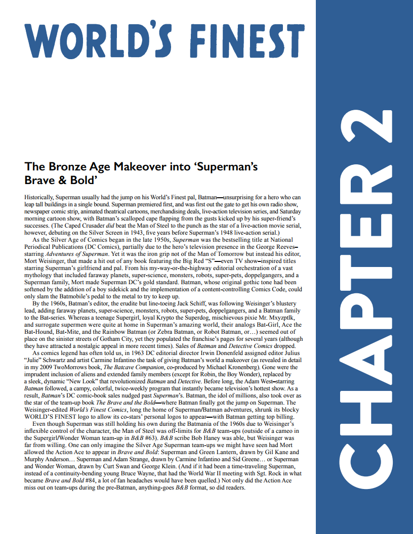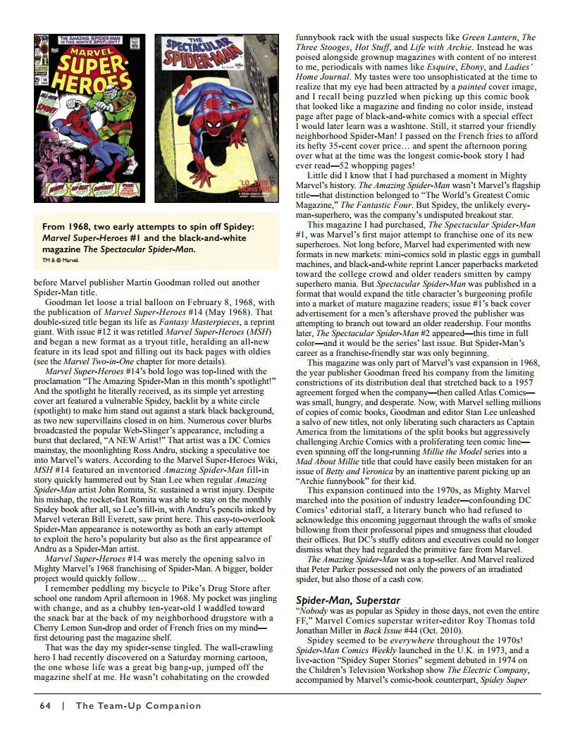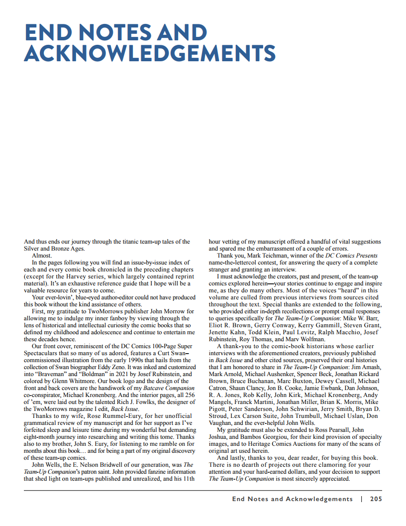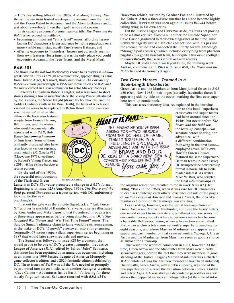 The Team-Up Companion examines team-up comic books of the Silver and Bronze Ages of Comics; DCs The Brave and the Bold and DC Comics Presents, Marvel’s Marvel Team-Up and Marvel Two-in-One, plus other team-up titles, treasuries, and treatsin a lushly illustrated selection of informative essays, special features, and trivia-loaded issue-by-issue indexes. Go behind the scenes of your favorite team-up comic books with specially curated and all-new creator recollections from Neal Adams, Jim Aparo, Mike W. Barr, Eliot R. Brown, Nick Cardy, Chris Claremont, Gerry Conway, Steve Englehart, Steve Gerber, Steven Grant, Bob Haney, Tony Isabella, Paul Kupperberg, Paul Levitz, Ralph Macchio, Dennis ONeil, Martin Pasko, Joe Rubinstein, Roy Thomas, Len Wein, Marv Wolfman, and many other all-star writers and artists who produced the team-up tales that so captivated readers during the 1960s, 1970s, and early 1980s! By Back Issue and RetroFan editor Michael Eury.