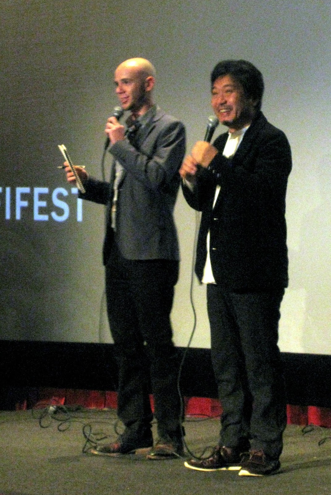| Koreeda and his translator discussing Our Little Sister after the screening |