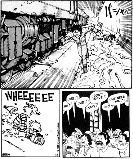 | Top: Otomo’s Akira; Bottom: Watterson’s Calvin and Hobbes, Brown’s Louis Reil |