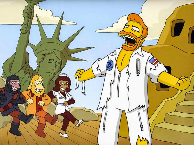 The origin of that bit goes back a long way. In 1992, I pitched “Planet Of The Apes: The Musical” and then, “Hal Holbrook is Dr. Zauis as Mark Twain” as fake commercials for The Ben Stiller Show. The show got cancelled before we could do it and “Planet Of The Apes The Musical” ended up being done brilliantly at The Simpsons.