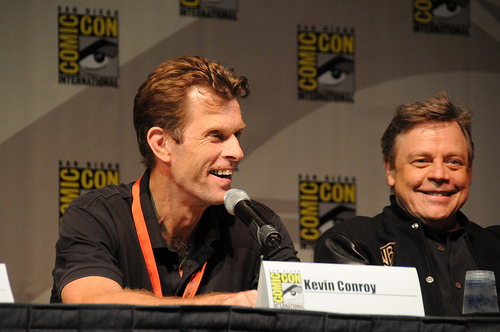 I love Kevin. I can’t express it – he’s one of the nicest guys in all of show business. What I love about him: he’s the absolute opposite of me. He’s never read a comic book in his life. The very first job he ever had in voice-over was Batman, which I couldn’t believe. I just found this out this past Comic-Con. And I thought, “Really? I think you’ve done voice-over for years and years and years.” “No, that was my very first animated voice,” so gung-ho –