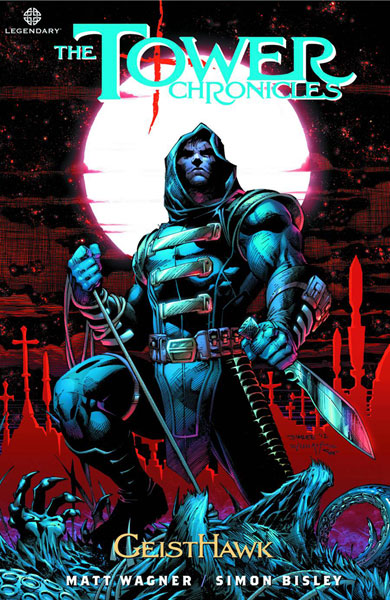 Now, after an announcement over two years ago at San Diego Comic Con, fans can get a chance to see Legendary’s first original effort. Book One of The Tower Chronicles: GeistHawk, a 68 page OGN from comic legends Matt Wagner, and Simon Bisley under a cover by Jim Lee, will be in stores tomorrow.