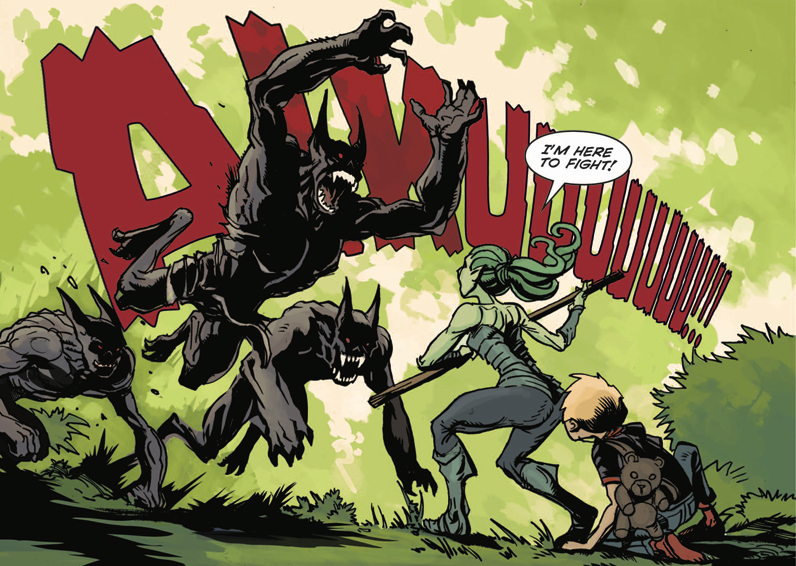 We get the Kamandi reference quite a bit, but for us the influence is really more Mowgli from The Jungle Book and Jess from Bridge to Terebethia. We’ve built fantastical vivid fantasy, world where the burdens of adolescence are personified as multi-headed monsters and maniacal mad scientists.