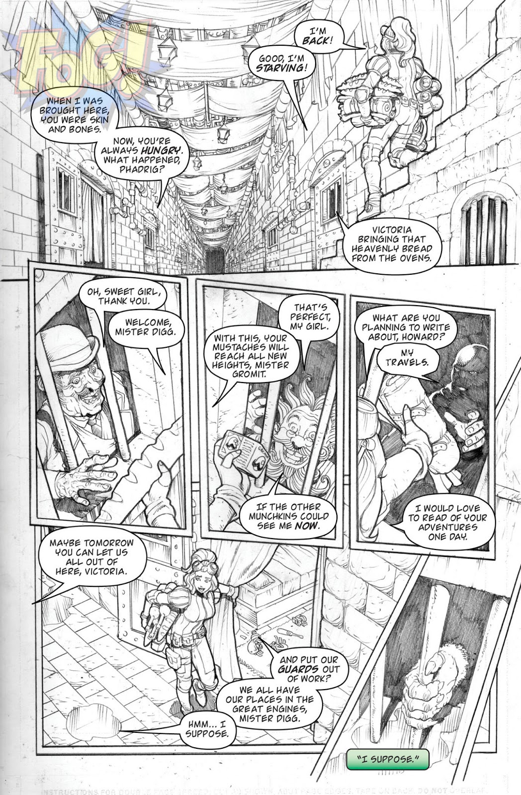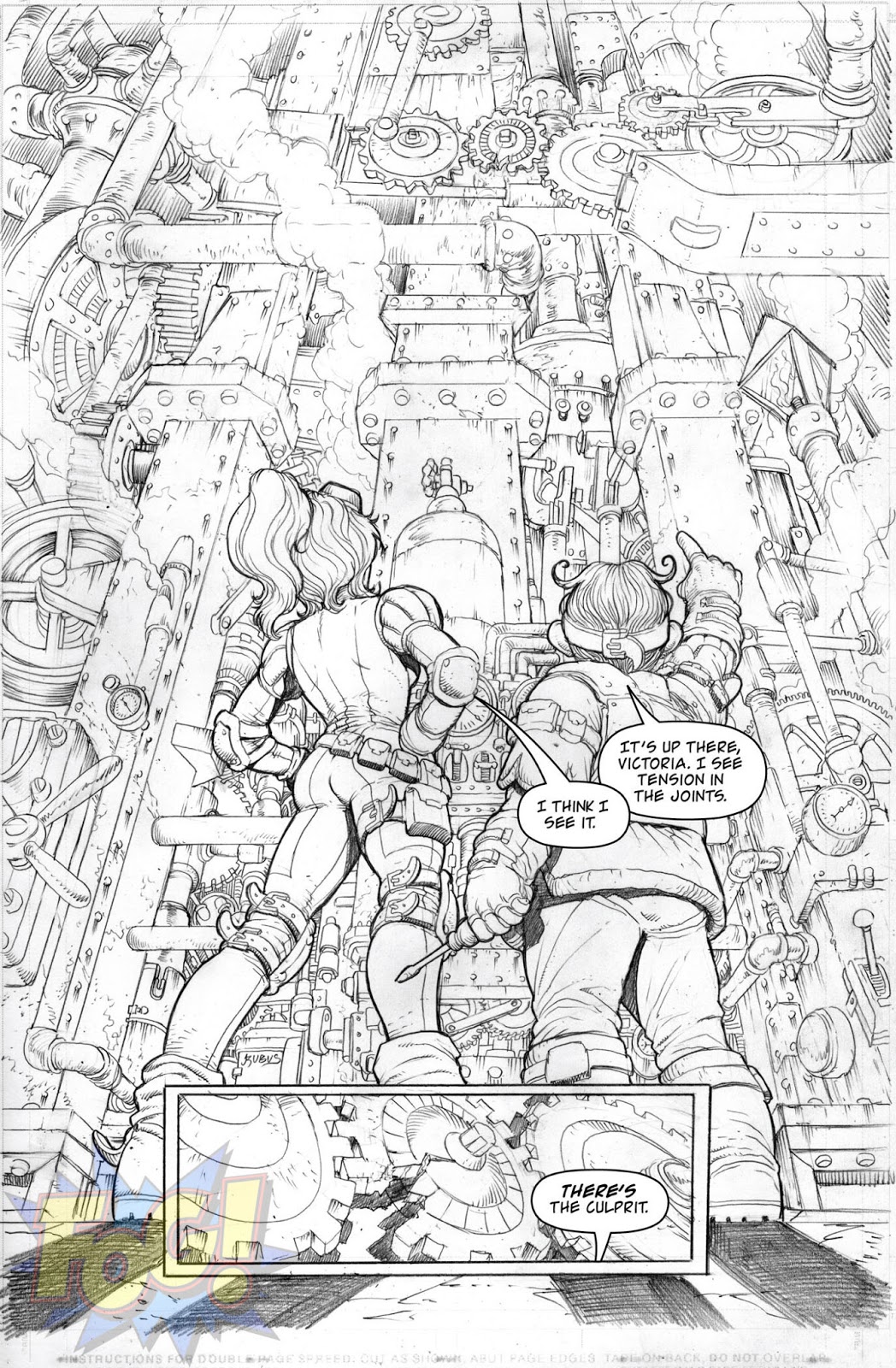 The world of Oz is getting a steampunk makeover in Arcana’s new book, The Steam Engines of Oz, published by Arcana Comics. While the project is quite anticipated no one has seen pages from the book…until now. FOG! presents, for the first time, eight pages from the upcoming series which occurs 100 years after the death of the witch and where a young girl named Victoria Wright sparks a rebellion in the fabled land.