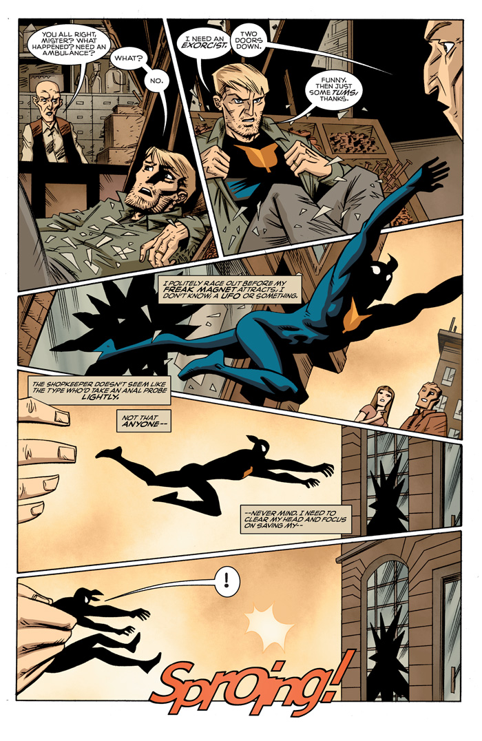 Dean Haspiel: Thanks, Clay! I originally proposed a different idea for the Freak Magnet sequel that involved an ex-girlfriend who was a therapist for disturbed superheroes, the power of fossil fuel and the resurrection of a Tyrannosaurus Rex dinosaur buried underneath the center of Impact City, and a zombie-version of The Jaguar.