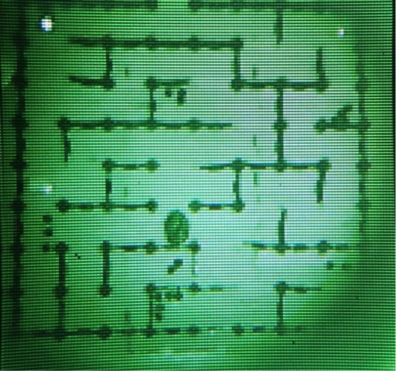 Three of the four players play as explorers who navigate a maze searching for treasure. Their goal is to collect 3000 gold and escape. Their small LED mounted player tokens illuminate a finite area around them. Their view looks like this: