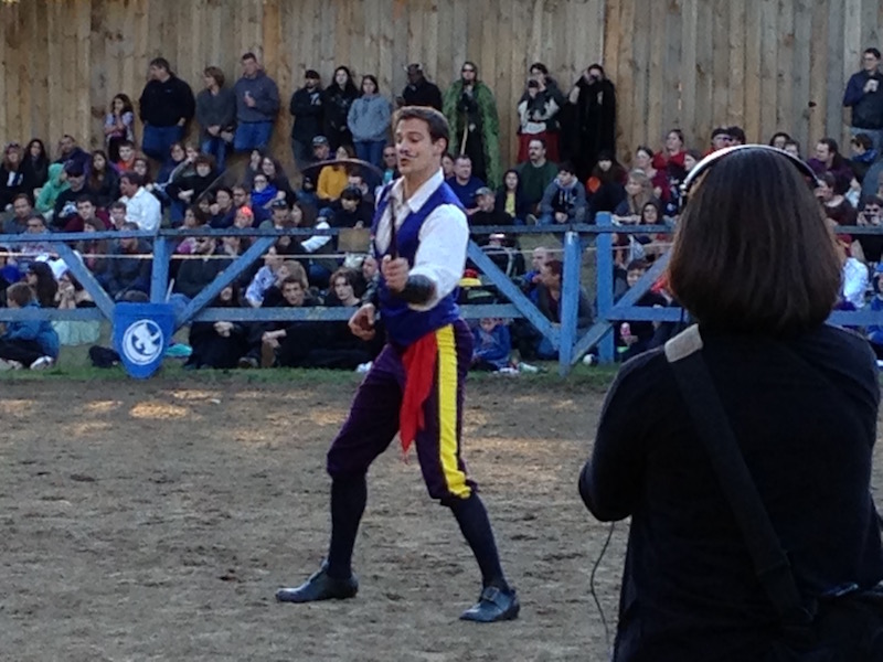 Depending on what quadrant of the field you may be watching at, some kindly proto-cheerleaders assign you a knight and your colors to wave of during the joust. Two or more very nervous looking knaves hold aloft rings for the Knights to catch as they head toward each other (in their own lanes) on opposite ends of the field. One version of the ring catching is ‘Stationary’ meaning that the knave lets go when the ring is on the lance. The other is ‘Midair’, as the serf tosses the ring to be caught by the knight as he rides by. One can imagine the Dargonwick Castle style torture one of these assistants receives if he or she is a bad ‘pitcher’.
