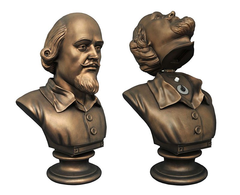 Holy Taming of the Shrew! Based on the Shakespeare bust that unlocked the moving bookcase in the TV series, this life-size vinyl bank is a must have for any red-blooded crime-fighter. Featuring a coin slot, access door, and neck hinge so you can tilt back the head revealing a dial and button, this bank might not activate your Bat-Poles and access to the Batcave, but it does an amazing job collecting spare change.
