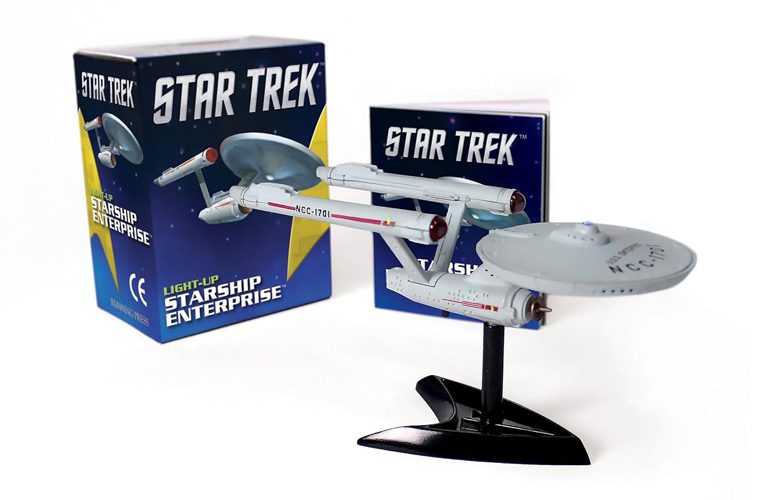 Welcome to the U.S.S. Enterprise! Unlike the original starship which was home for 430 crew members, this version stands a mere 5″ in length, this light-up miniature includes a display base and a 32 page book on the history of the U.S.S. Enterprise.