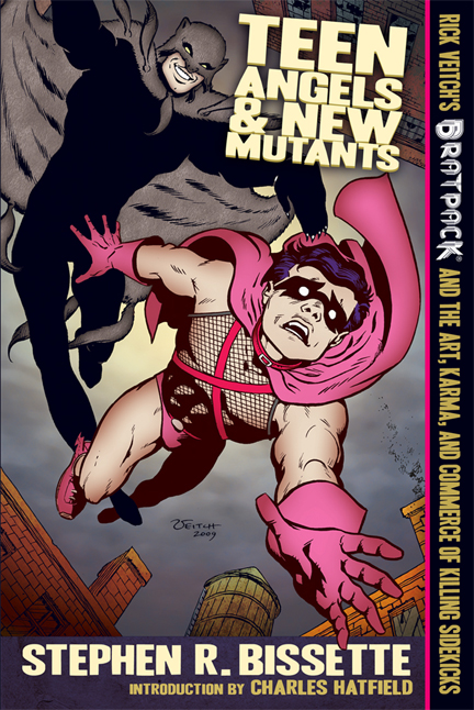 Writer/artist Rick Veitch’s career bridges the underground comix of the 1970s, mainstream DC and Vertigo Comics, and the self-publishing revolution of the 1980s and 1990s. In that extraordinary body of work, Brat Pack® remains a landmark, and Teen Angels & New Mutants is the first book-length, in-depth study of a creator and graphic novel worthy of the autopsy. En route, Teen Angels offers a crash-course on teen pop culture and superhero sidekick history, fresh analysis of Dr. Fredric Wertham’s seminal books, ponders real-world “new mutants” like Michael Jackson, The Olsen Twins, and Justin Bieber, and charts the 1980s comicbook explosion and 1990s implosion–and more.