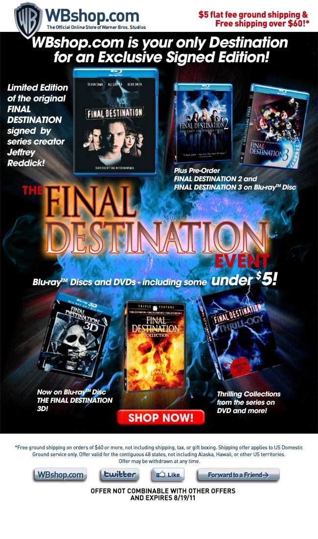 All copies sold of the original Final Destination will include autographs from Reddick until quantities are sold out.