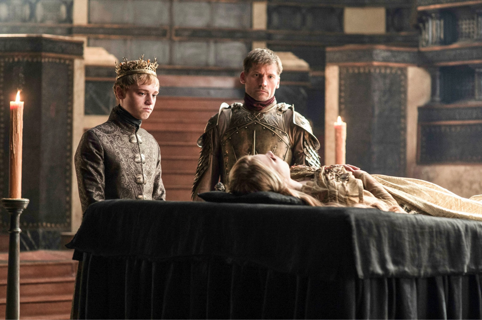 Jaimie looking sullen as he returns with the body of his daughter Myrcella Baratheon, who was poisoned by Ellaria Sand in a fatal final kiss.